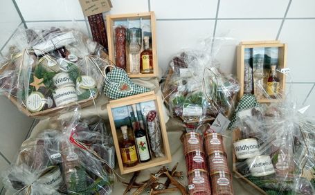 unsere leckeren Wurstspezialitäten von Walnussbeißer, Pfefferbeißer, Chilibeißer, verschiedene Salami, Schinken vom Reh, Hirsch und Wildschwein uvm.....